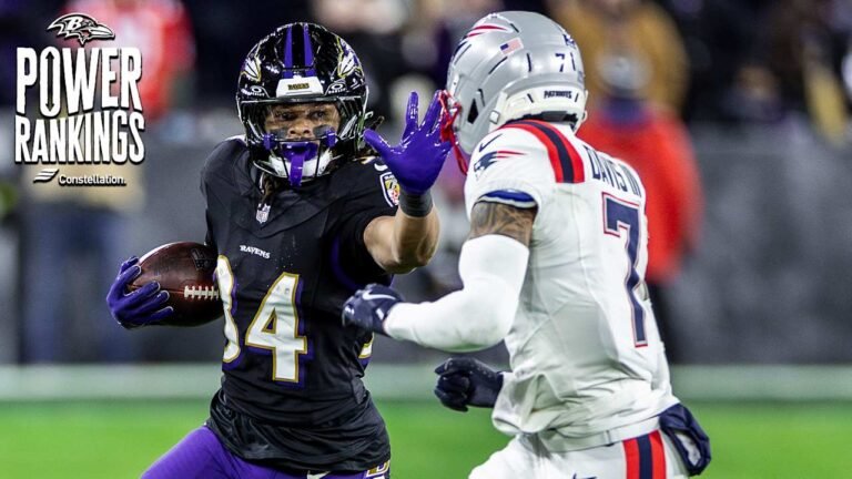 The Ravens, who lost an 11-point lead in the fourth quarter to the New England Patriots on Sunday night are now hovering near the middle of the hierarchy. Baltimore, which had been a unanimously ranked top five team prior to the season, has now fallen as low as number 18. ESPN’s rankings place Baltimore at number 18.