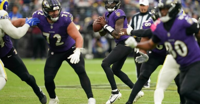 Tyler Huntley replaced Cooper Rush as quarterback in the fourth. Huntley was the quarterback for the last 25 offensive plays after Rush had played 53 snaps. The Ravens started the same offensive line, but Ronnie Stanley was replaced at left tackle by Joseph Noteboom after he was forced to leave early due to an ankle injury.