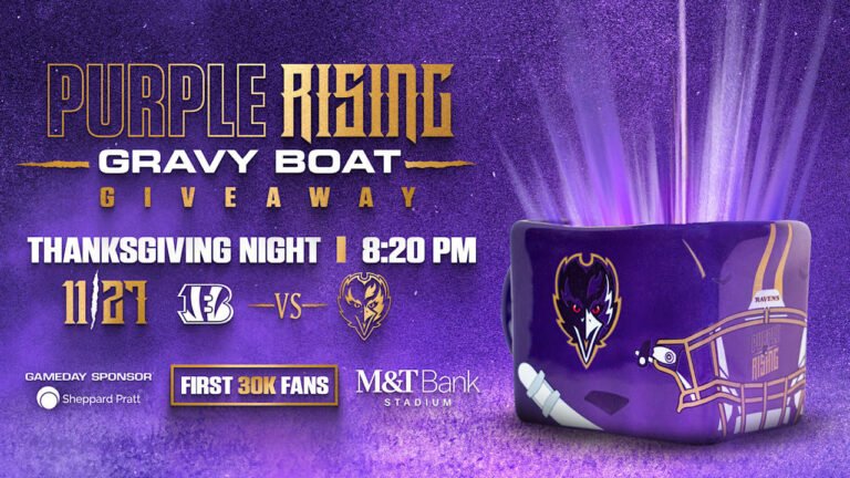 The first 30,000 people to arrive at M&T Bank Stadium on Thanksgiving night will receive a Purple Rising gravy bowl.